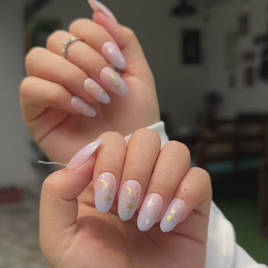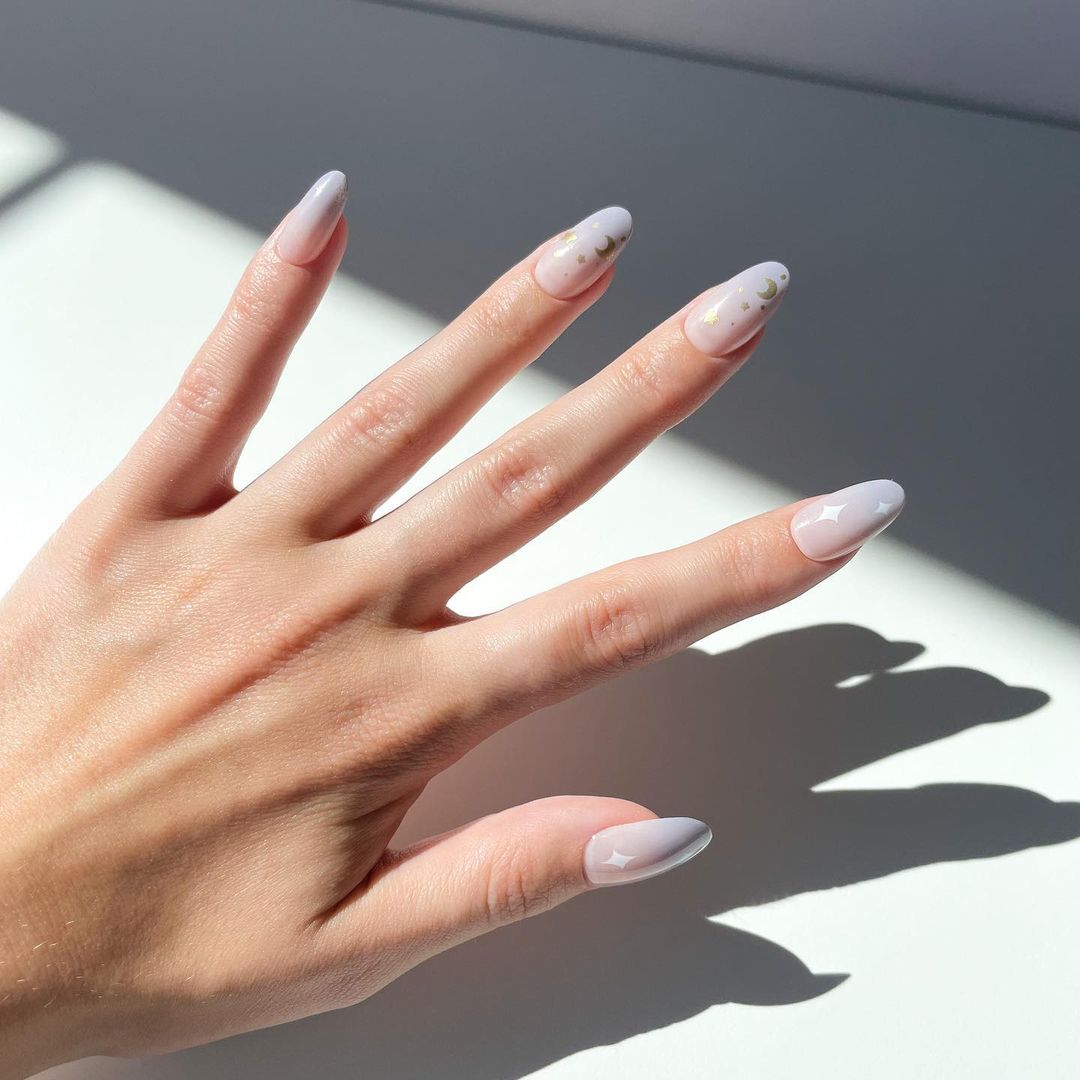 What we love: Pink purple ombre nails with stars and moons ⭐🌛