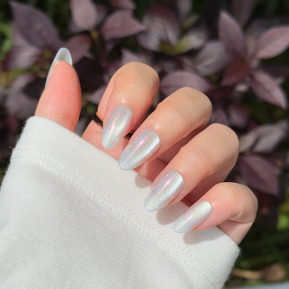 What we love: Mesmerizing silverish-white hue that's as magical as a unicorn's mane, complete with a semi-transparent, holographic finish that adds a sprinkle of fairy dust to every outfit. 💅✨