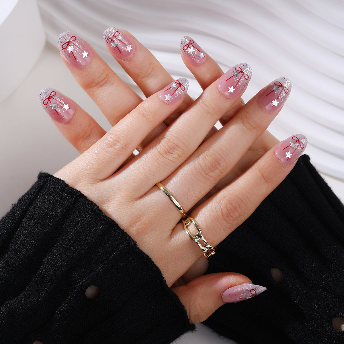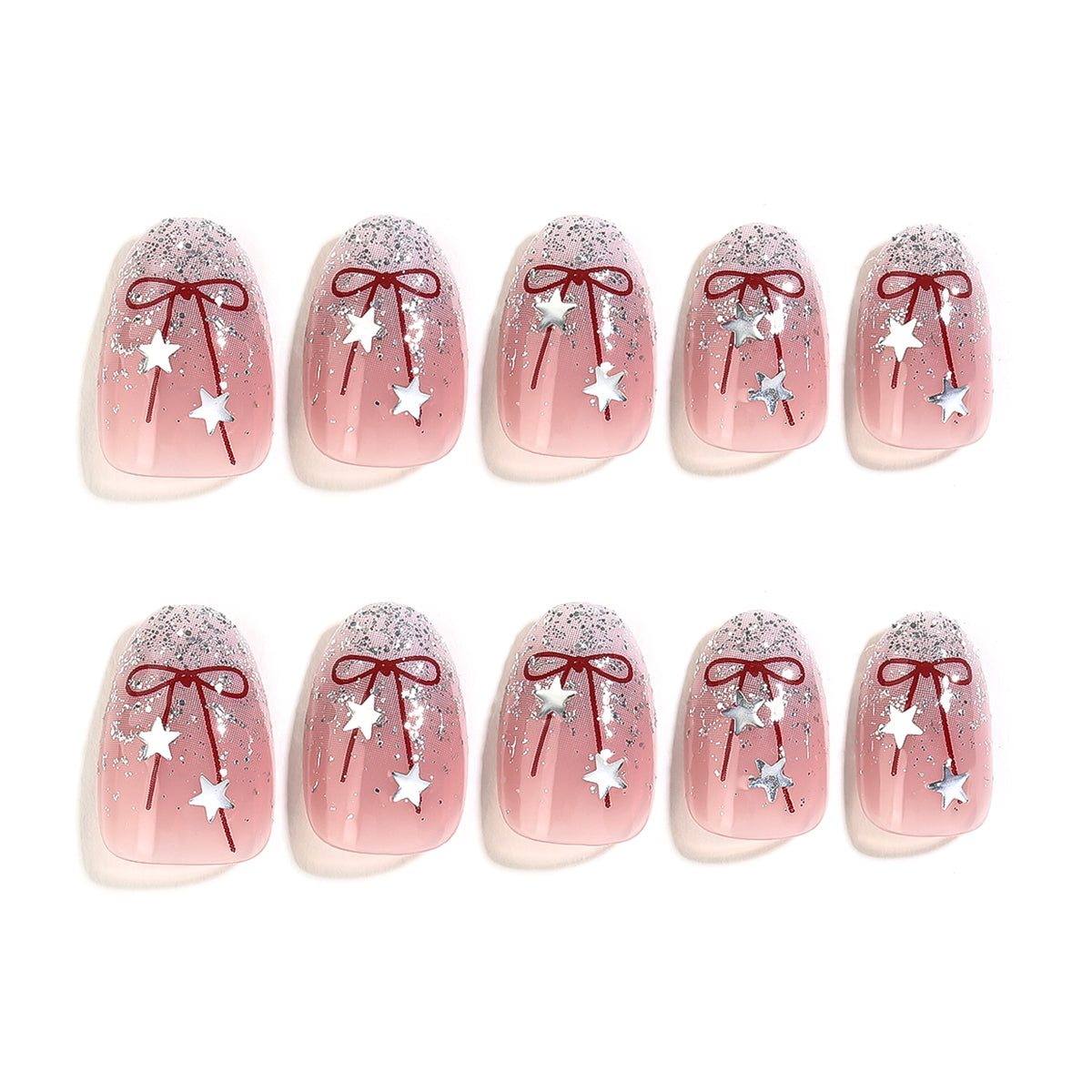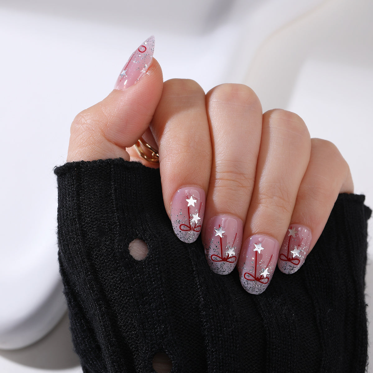 What we love: Featuring dazzling silver glitter tips that sparkle like freshly fallen snow, complemented by a delicate red ribbon accent at the center of each nail. Scattered silver star stickers add a whimsical touch, completing the look with celestial charm. Perfect for Christmas parties, cozy gatherings, or whenever you want to shine bright this season, Twinkling Tinsel is your ultimate holiday manicure for spreading joy and glamour.